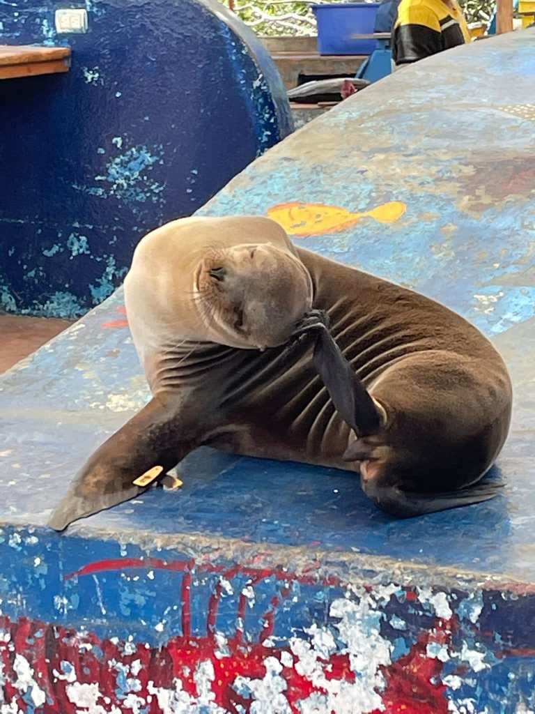 La brisa salada acaricia mi rostro mientras desembarco en la isla Santa Cruz. Aquí, la vida marina bulle en las aguas cristalinas. Tortugas gigantes, icónicas habitantes de estas tierras, se desplazan con gracia, compartiendo el espacio con leones marinos juguetones que descansan bajo el cálido sol ecuatorial.